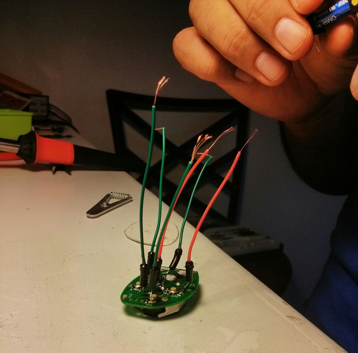 So I took out the remote from it’s case and connected one cable on each pole of each button